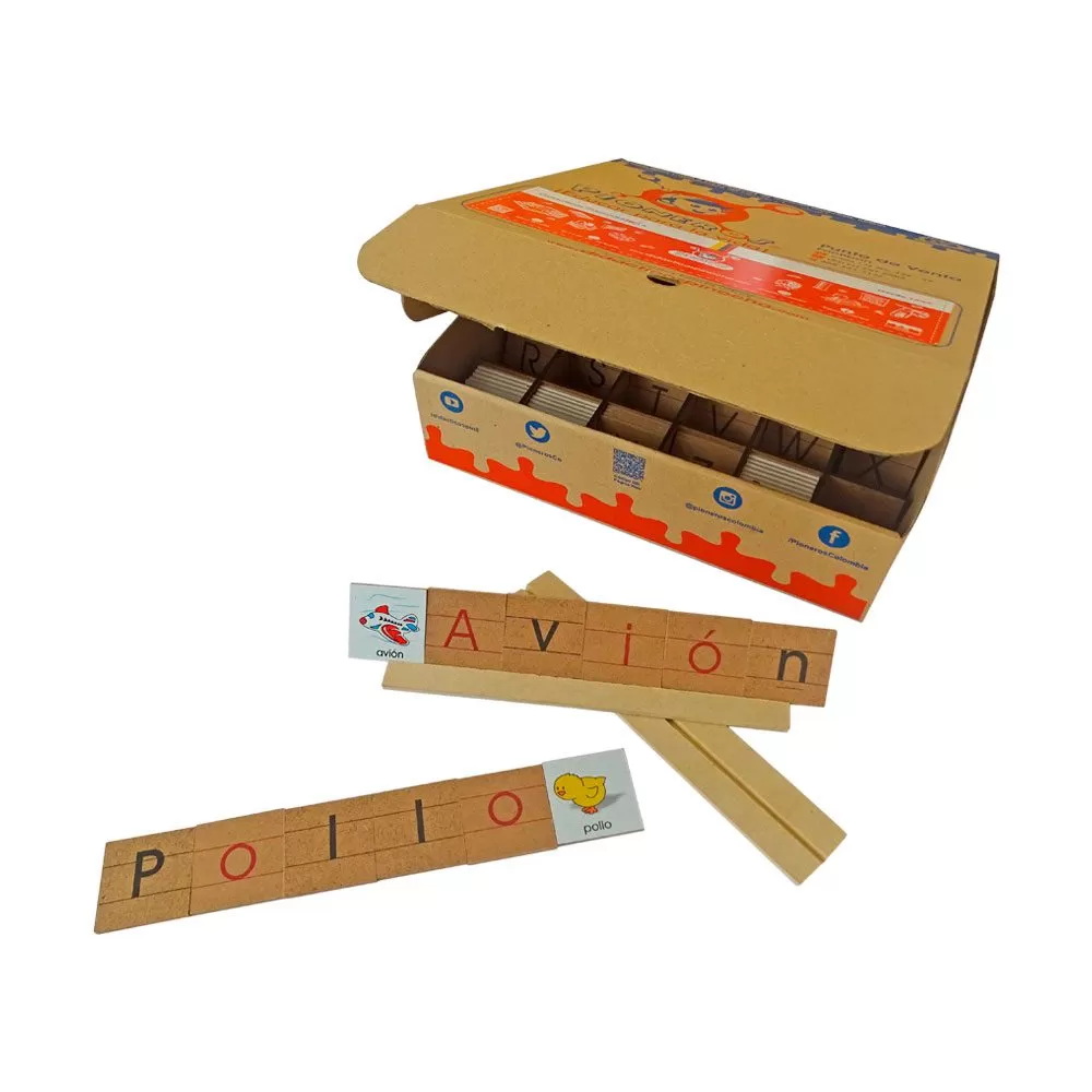 Descripción:Juego fabricado en madera MDF con impresión serigráfica en policromía a base de tintas UV no tóxicas, compuesto por una caja de cartón con divisiones internas para organizar 27 vocales rojas (tildadas, minúsculas y mayúscula), 80 consonantes (minúscula y mayúscula), 27 dibujos a todo color y 2 soportes en madera para las fichas.