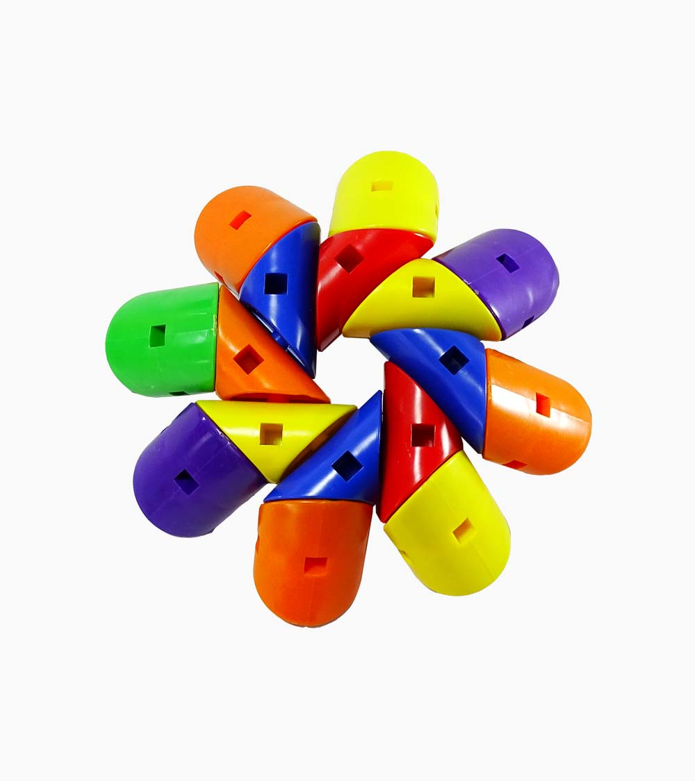 Descripción: Conectores Mágicos elaborados en plástico de diferentes tamaños, formas y colores. Compuesto por 36 piezas con un sistema pin-agujero para realizar uniones. Adicionalmente trae 4 tarjetas en maule plastificado, impresas en policromía con secuencias para armar. instructivo descargable en código QR.