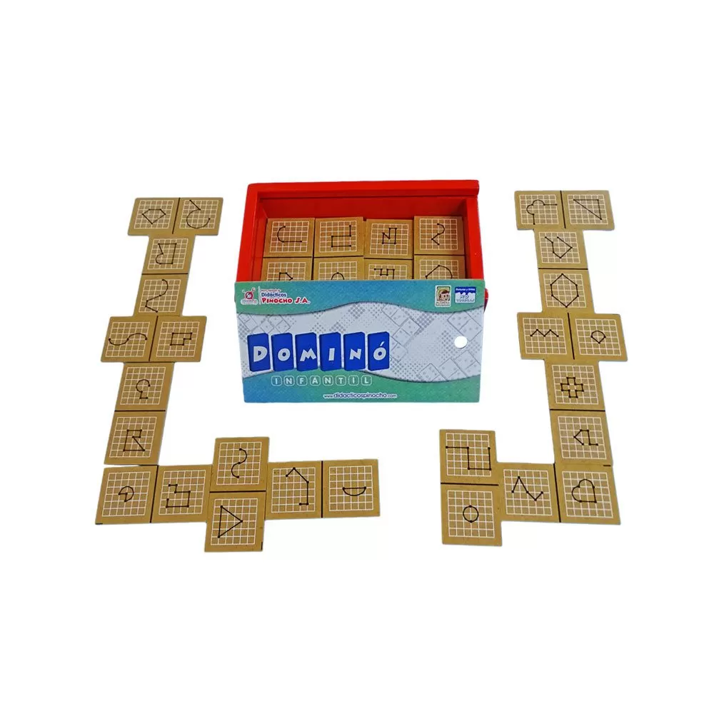 Descripción: Juego fabricado en madera MDF con impresión serigráfica en policromía a base de tintas UV no tóxicas, compuesto por 1 caja de madera que funciona como almacenamiento, 28 fichas de 8 x 4 x 0,3 con ilustraciones de perímetros.