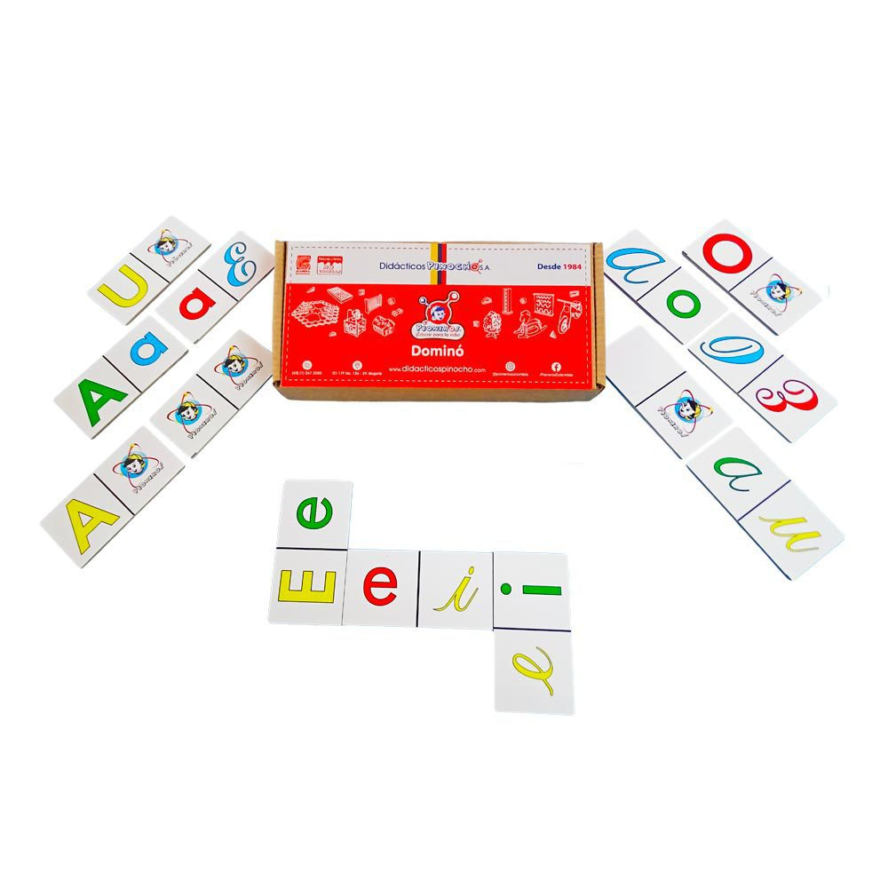Descripción: Juego fabricado en madera MDF con impresión serigráfica en policromía a base de tintas UV no tóxicas, compuesto por 28 fichas de 8 x 4 x 0,3 con ilustraciones de las vocales y dibujos.