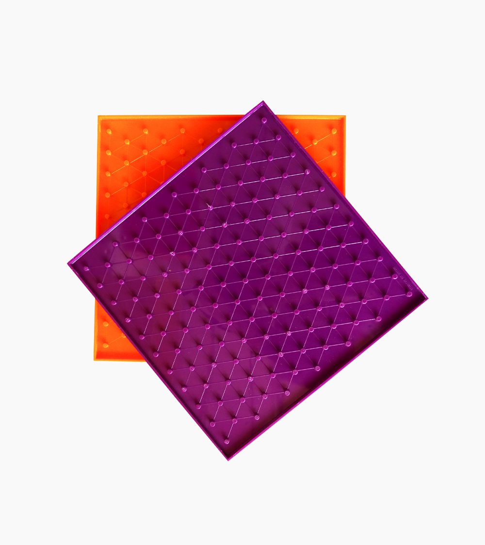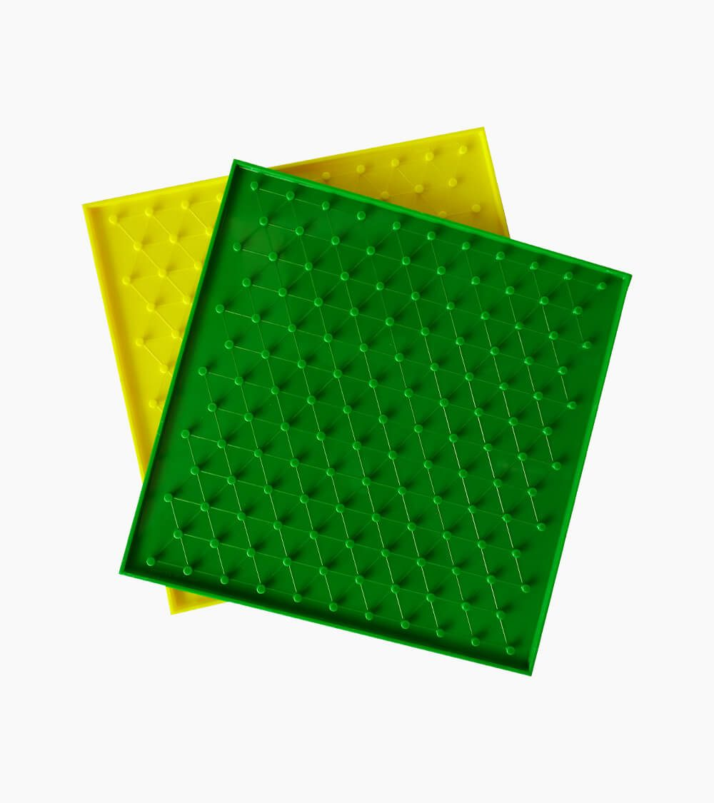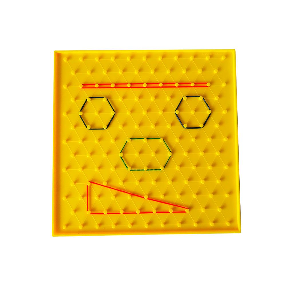 Descripción: Geoplano Didáctico Doble Cara elaborado en plástico de diferentes colores, por lo gener son de color amarillo pero pueden varias de acuerdo a disponibilidad. Compuesto por un geoplano y 24 bandas elásticas de diferentes colores.