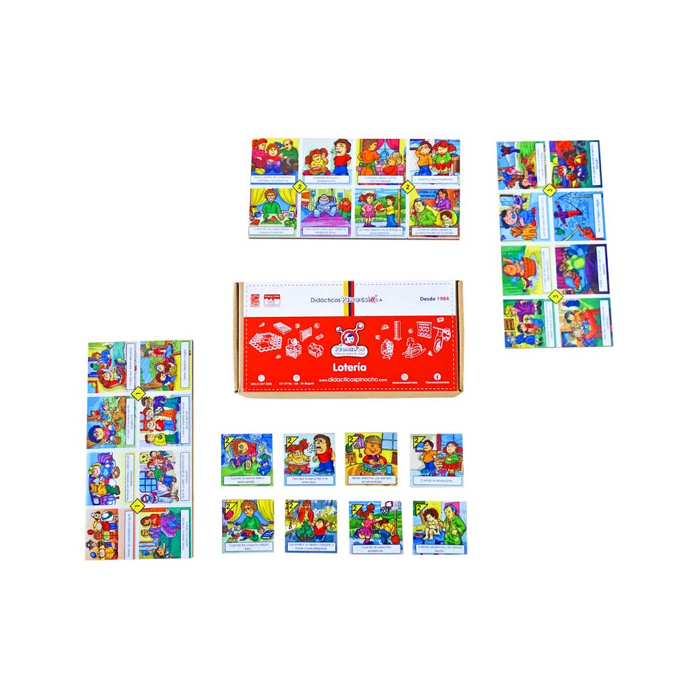 Objetivo del juego: Esta lotería busca desarrollar las temáticas de Derechos y Deberes, Relaciones Interpersonales y Prevención de Situaciones de Riesgo, cuyo fin es brindar una herramienta de ayuda a los niños y niñas durante su desarrollo, presentando diferentes circunstancias en las cuales se pueden encontrar y en las que cuentan con el apoyo de otras personas y entidades dispuestas a ayudarlo y a hacer cumplir sus derechos.