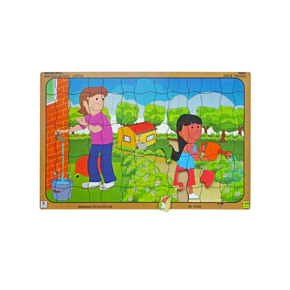 Descripción: Rompecabezas fabricado en madera MDF con impresión serigráfica en policromía a base de tintas UV no tóxicas, compuesto por 144 piezas modulares y una base con marco en madera.