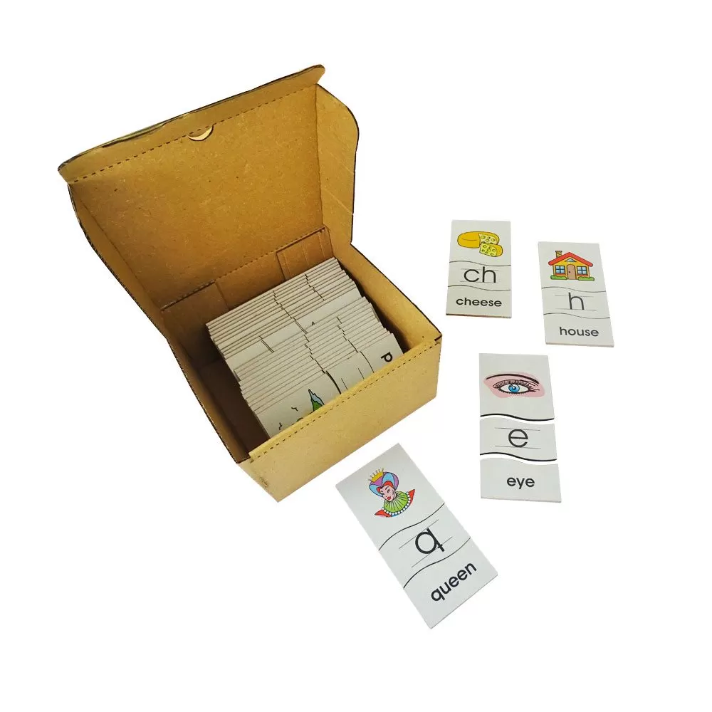 Descripción: Juego fabricado en madera en MDF con impresión serigráfica en policromía a base de tintas UV no tóxicas, compuesto por 1 caja de cartón que funciona como almacenamiento y 28 rompecabezas repartidos en 3 piezas que son complementarias entre sí (dibujo, letra, palabra).
