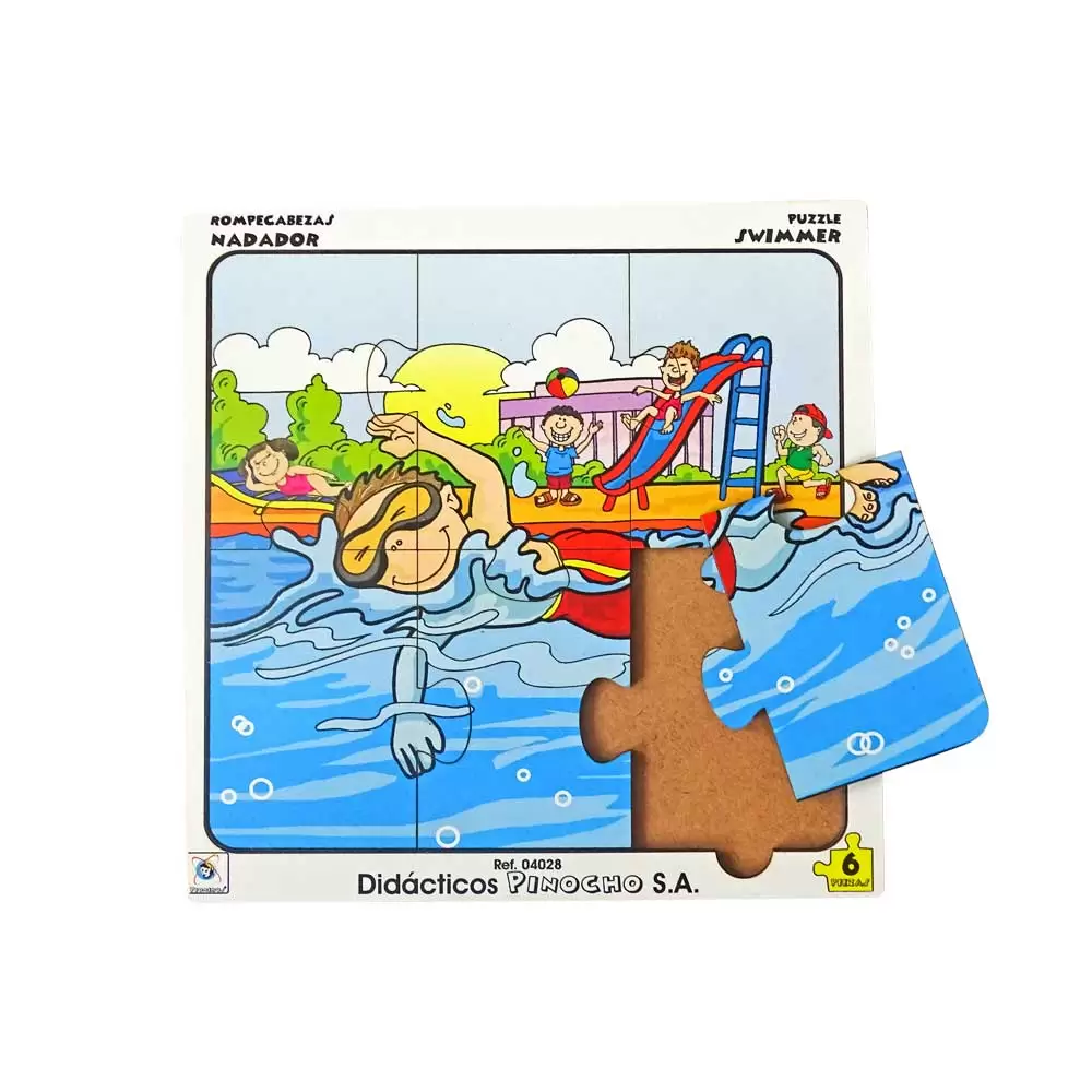 Descripción: Rompecabezas fabricado en madera MDF con impresión serigráfica en policromía a base de tintas UV no tóxicas, compuesto por 6 piezas modulares y una base con marco en madera.