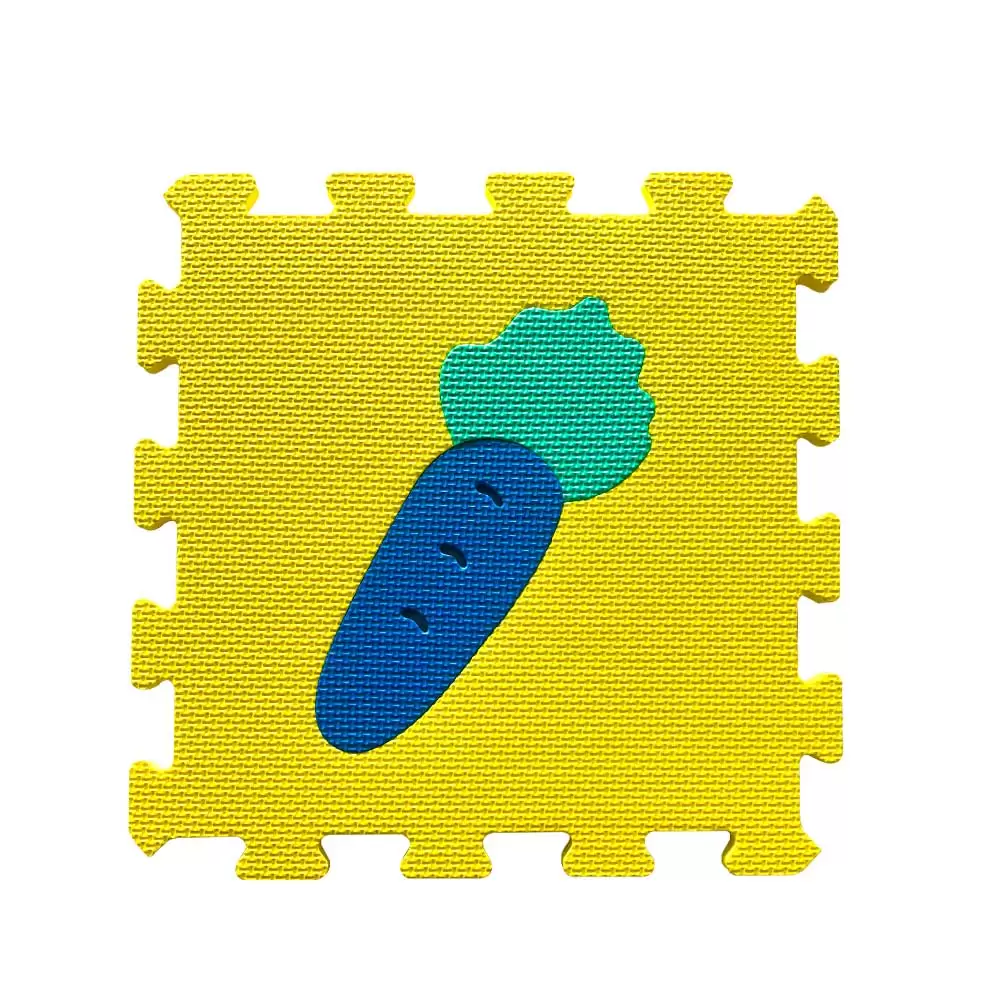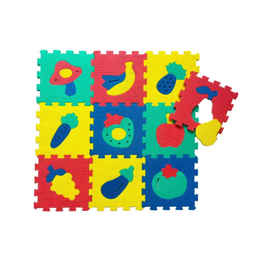Descripción: Tapete de frutas fabricado en espuma Eva de diferentes colores, textura cruzada, frutas y sus partes para encajar de buena flexibilidad y sistema de encaje tipo rompecabezas. Compuesto por 10 piezas, cada una de 32 x 32 x 1 cm.