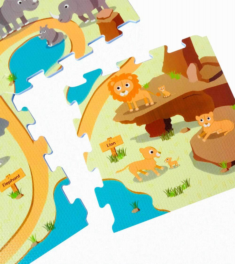 Juego Infantil – Objetivo: El tapete es una herramienta para brindar seguridad a los niños y/o niñas al momento de realizar actividades de motricidad, ya que el material en el que esta fabricado es flexible y acolchonado. Adicionalmente, estimula la motricidad fina por medio de las diferentes fichas del juego las cuales son encajables ya que tienen un sistema de unión tipo rompecabezas. Perfecto para decorar la habitación de los niños.