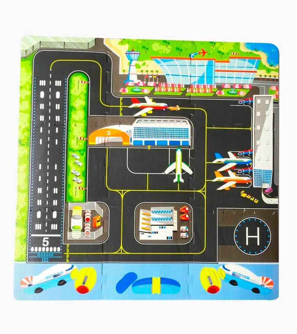 Descripción: Tapete rompecabezas en Eva El aeropuerto elaborado en Eva con impresión sobre rígido resistente (policromía). Contiene 9 piezas y cada una tiene un sistema de uniones tipo rompecabezas (32×32 cm). Resistente al agua y de facil limpieza.