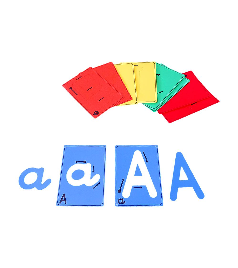 Descripción: Juego elaborado en plástico. Set de 10 plantillas compuesto por vocales mayúsculas y minúsculas encajables, con serigrafía a tinta plana uv no tóxica.